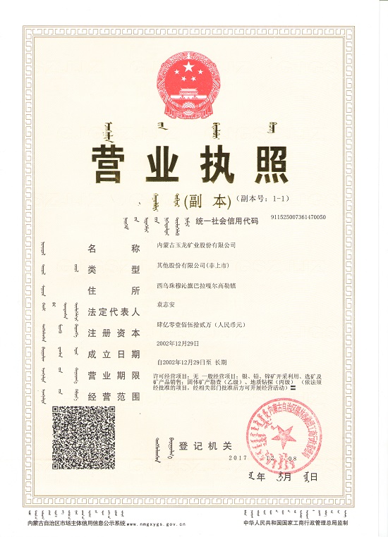 内蒙古玉龙矿业股份有限公司始建于2002年,矿山位于锡林郭勒盟西乌珠穆沁旗白音华镇巴彦胡博嘎查,法定代表人樊明玉,组织机构代码:73614700-5。公司现有选矿车间2座,总处理量为3000t/d,年处理量50万吨。选矿厂均已通过环保现场验收。